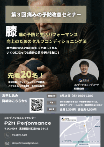 この度、旗の台のP2M Performanceにて「膝痛の予防と生活パフォーマンス向上のためのセルフコンディショニング法セミナー」を開催することとなりました!